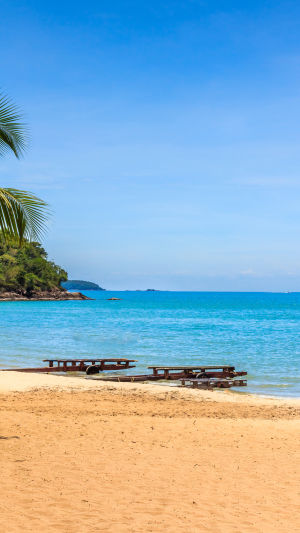 This wide, family‑friendly strand sits closest to the main road, with eateries and rental shacks steps away. Expect gentle water, shaded benches, and easy cab access. Sample fresh noodles or rice plates for $3–$6, then rent a bicycle ($5–$8/day) for a lazy coastal spin.